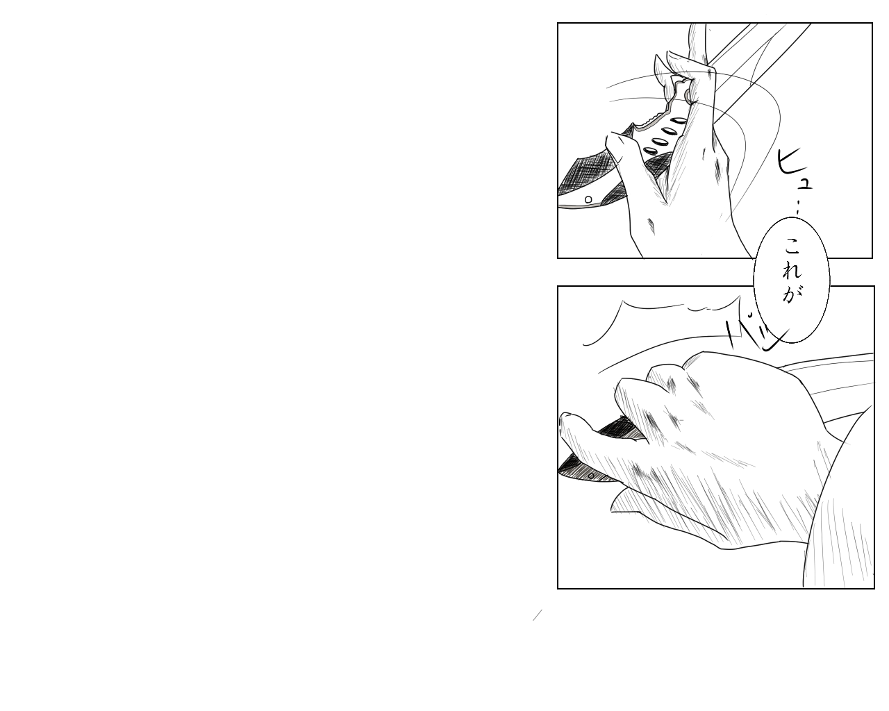 ナイフ持ってるほうは私のナイフを持っている手を撮影して描いたものですね。