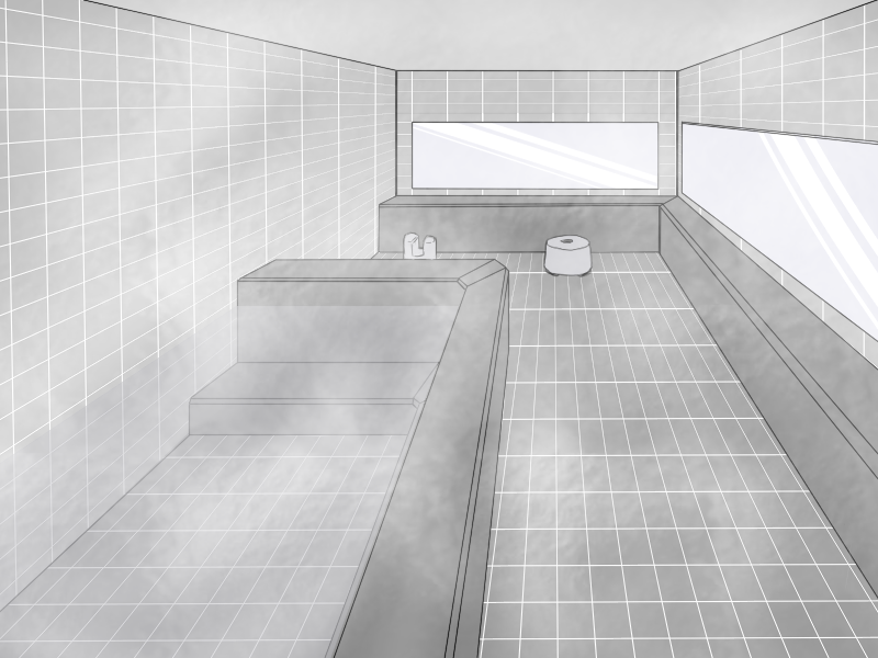 この中に誰かが入るわけでもなく、パースとかしっかり取っているわけでもなく、とりあえず私の技量の範囲で頑張ってみたお風呂場。